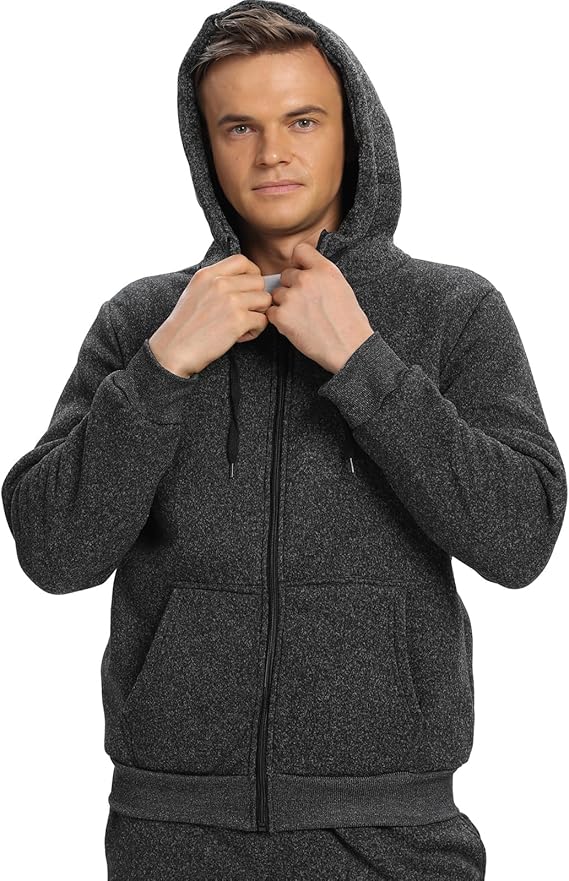 Hoodies for Men,Zip Up Fleece Sherpa Lined Jackets Ultra Soft hooded Sweatshirt with Pockets
