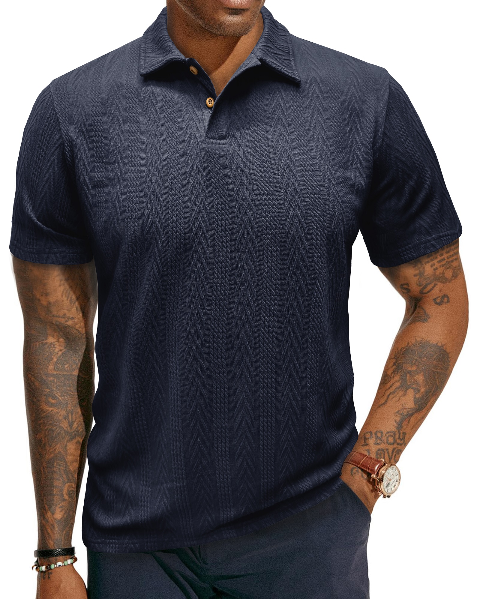 Men's Knitted Polo Shirts Short Sleeve Slim Fit Casual Golf Shirt Textured Knit V-Neck Summer Collared Tee Tops