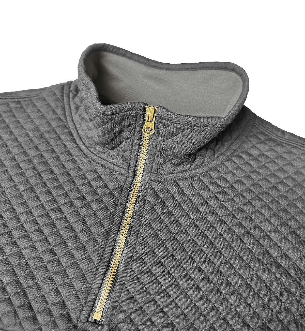 Product Features: Experience timeless style with our Men's Classic Color Block Quarter Zip Pullover. Color block design offers a sleek, modern look. The quilted pattern on the chest adds a touch of sophistication and texture. Featuring a convenient quarter-zip closure, this pullover is easy to wear and remove. The front pocket provides practical storage for your essentials.