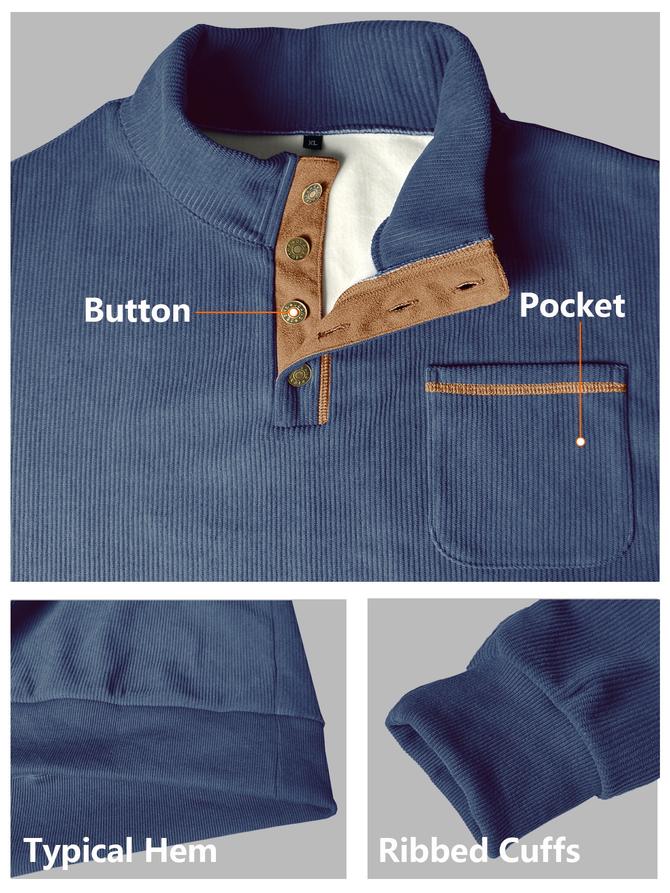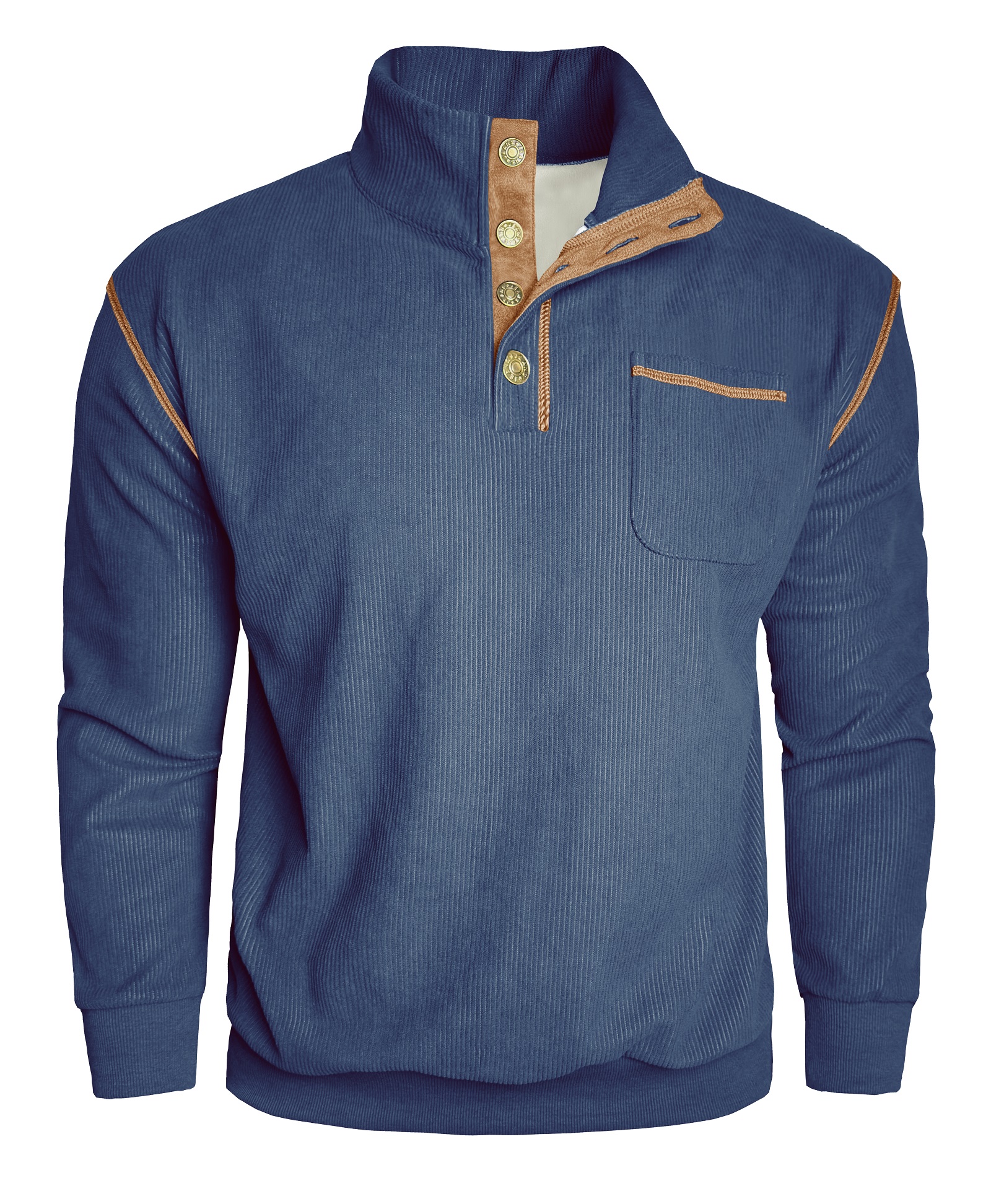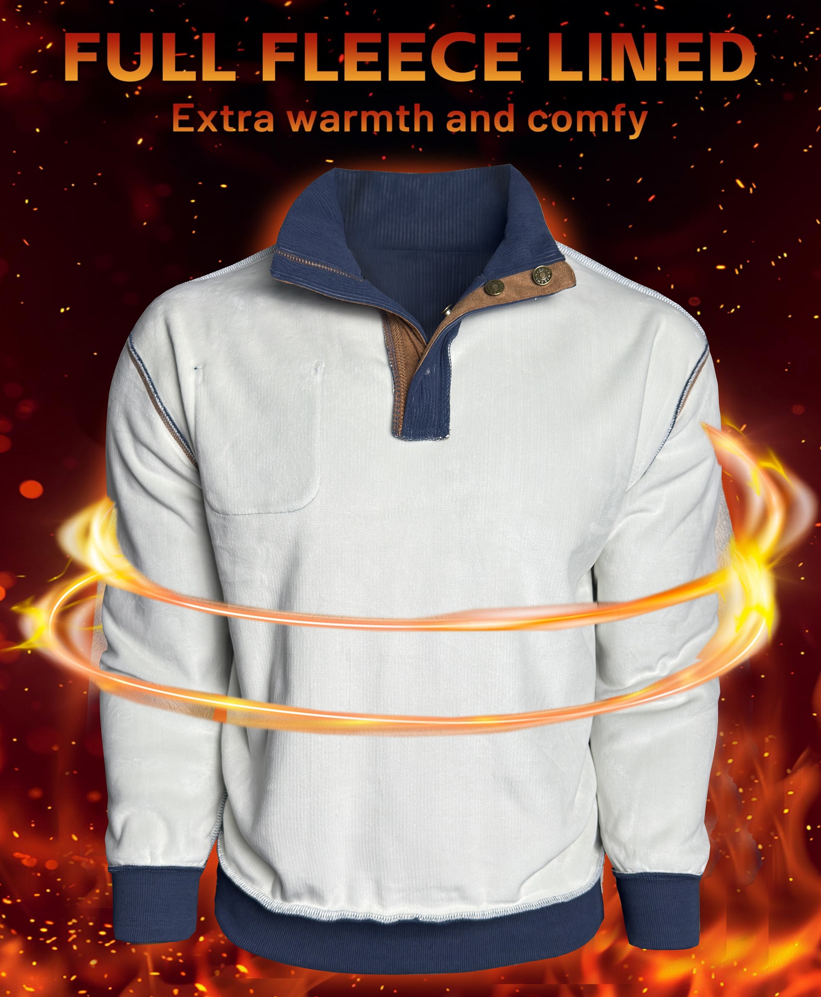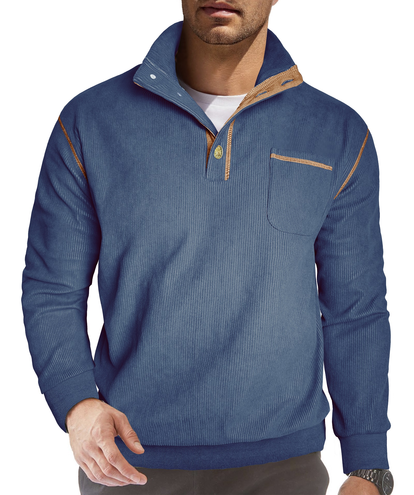 Premium Faric - Men's corduroy long sleeve 1/4 button pullover sweatshirt, crafted from lightweight warm fabric, perfect for fall and winter seasons. The fabric is slightly stretchy, allowing you to wear it more freely.