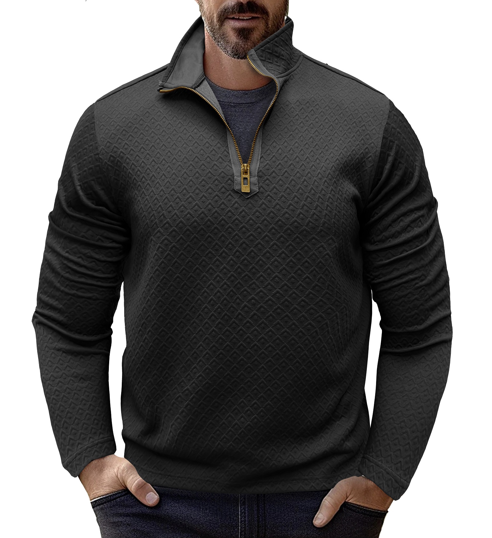 Men's Quarter Zip Sweatshirts Casual Long Sleeve Mock Neck Pullover Solid Textured Fall Clothes