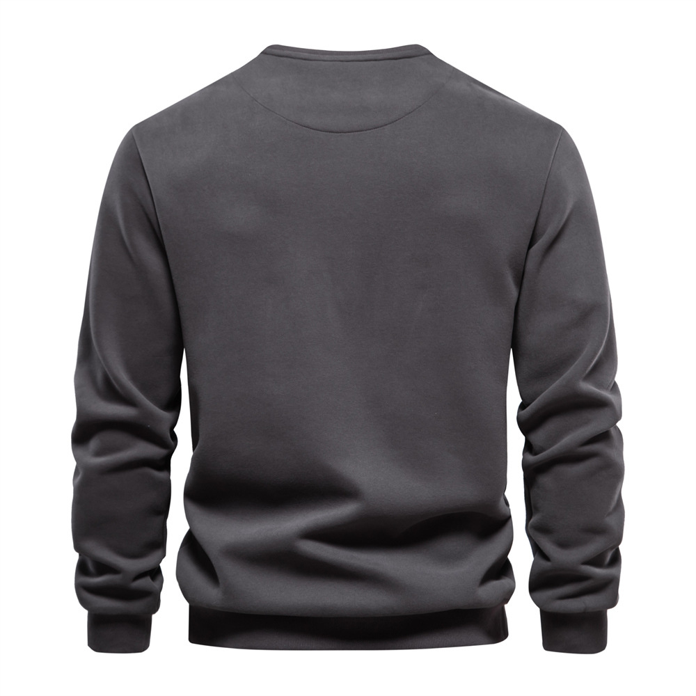 Men's Zip Pocket Pullover Hoodie, Casual Solid Color Crewneck Sweatshirt