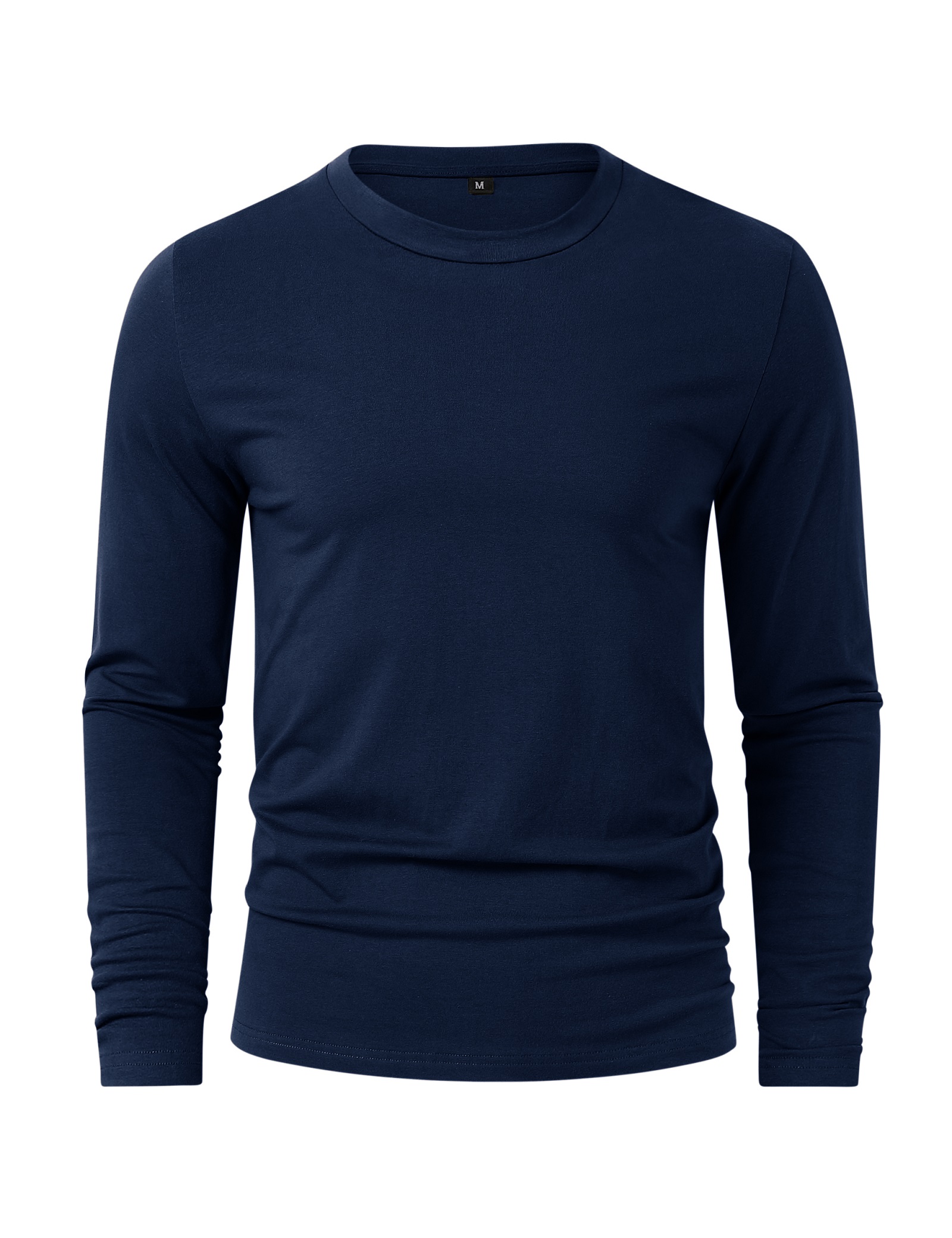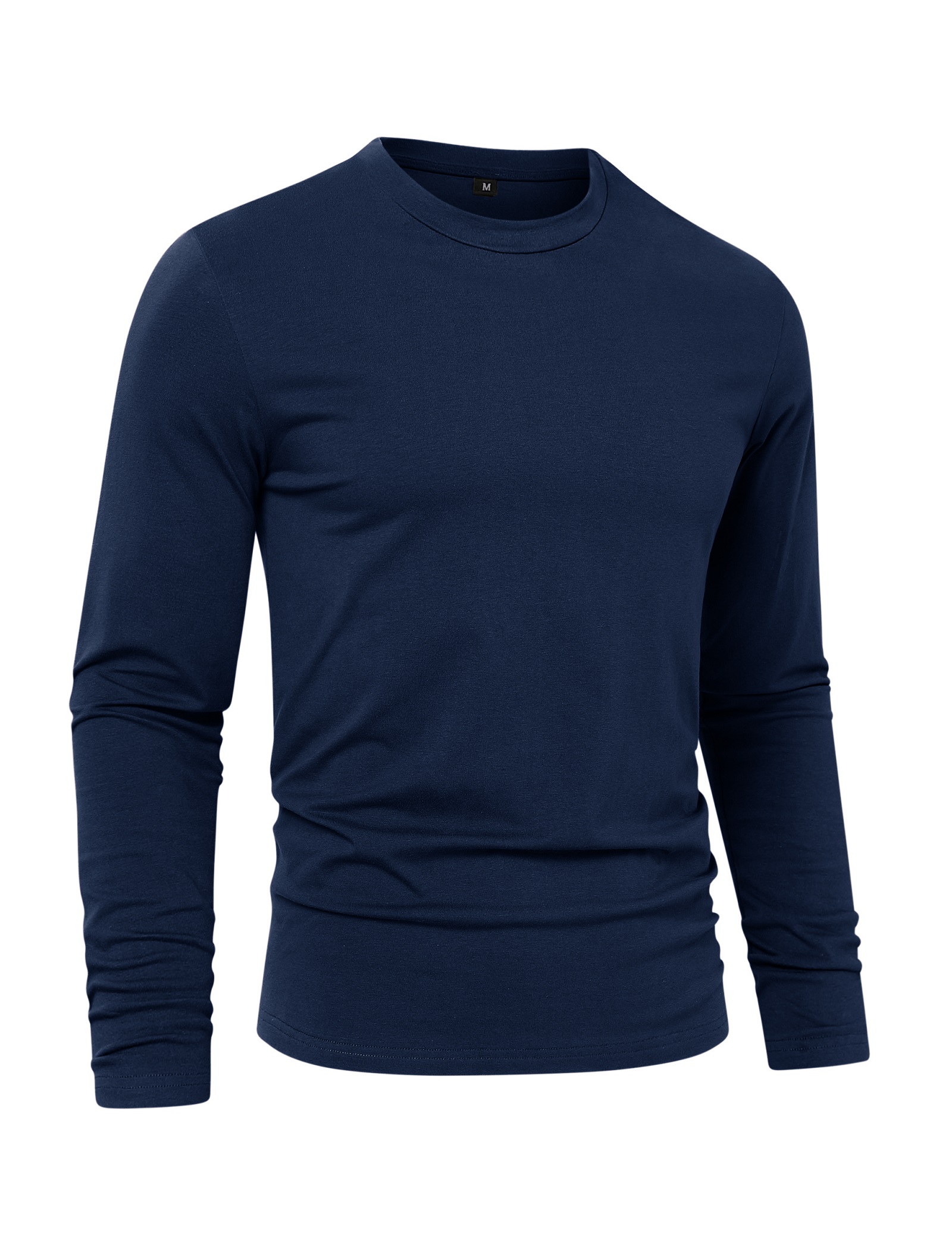 Men's Cotton Crewneck T-Shirts Long Sleeve Plain Tee Moisture Wicking Casual Tshirts Solid Color