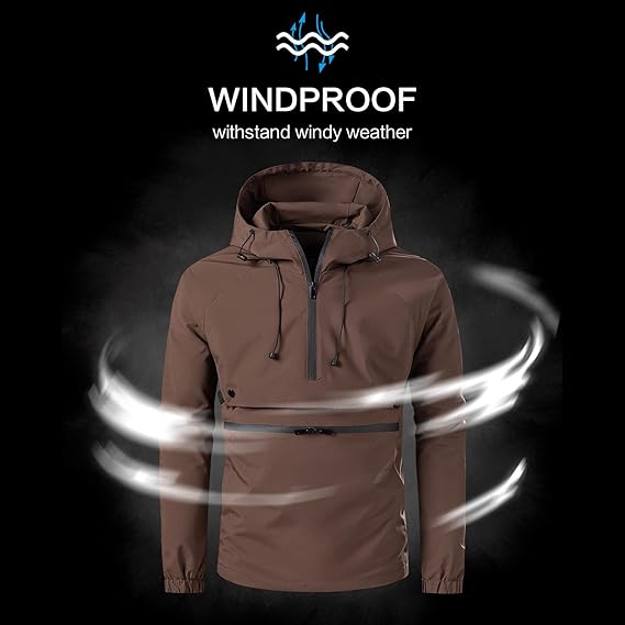 Men's Water-Resistant Windproof Half-Zip Hoodie Rain Jacket Outdoor Sports Coat Windbreaker Relaxed Fit