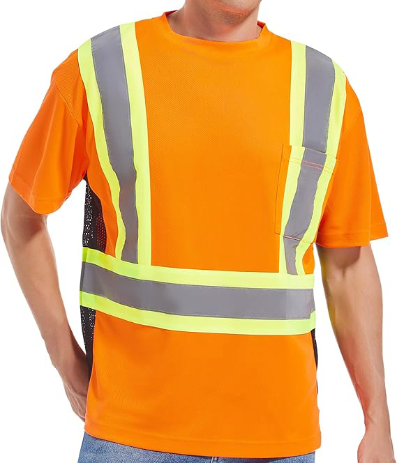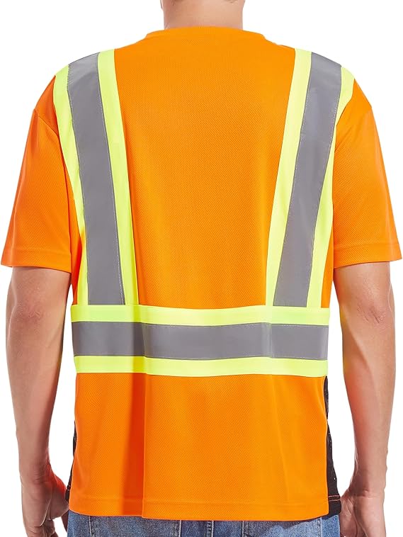Reflective Safety Shirt for Men and Women - Class 2 High Visibility Construction Shirt - Dual Tone Reflective Strips