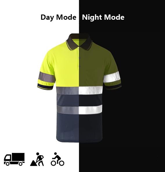 VISIBILITY & STYLES: The safety T-shirt has multiple Hi-vis reflective stripes, two 2'' reflective stripes around the waist and chest, a 2'' reflective stripe on each sleeve, which provide 360° protection while you are working under daylight or low light conditions. The reflective strips at the waist are disconnected, making it comfortable to wear. The bottom part of the safety shirt is made of navy bird eye fabric, which is not monotonous but also resistant to dirt.