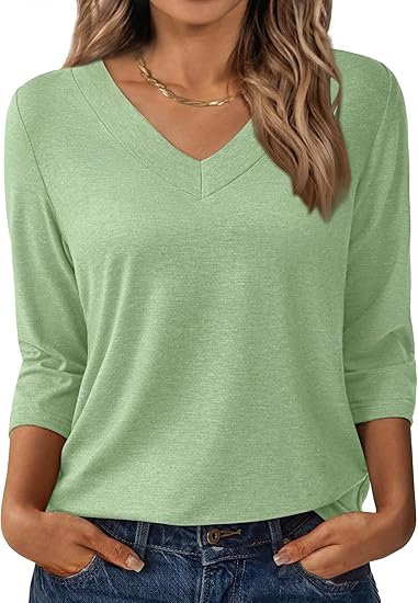 Women's Shirts Lightweight Summer Fall Fashion 3/4 Length Sleeve T Shirts Casual Tops Basic Blouses