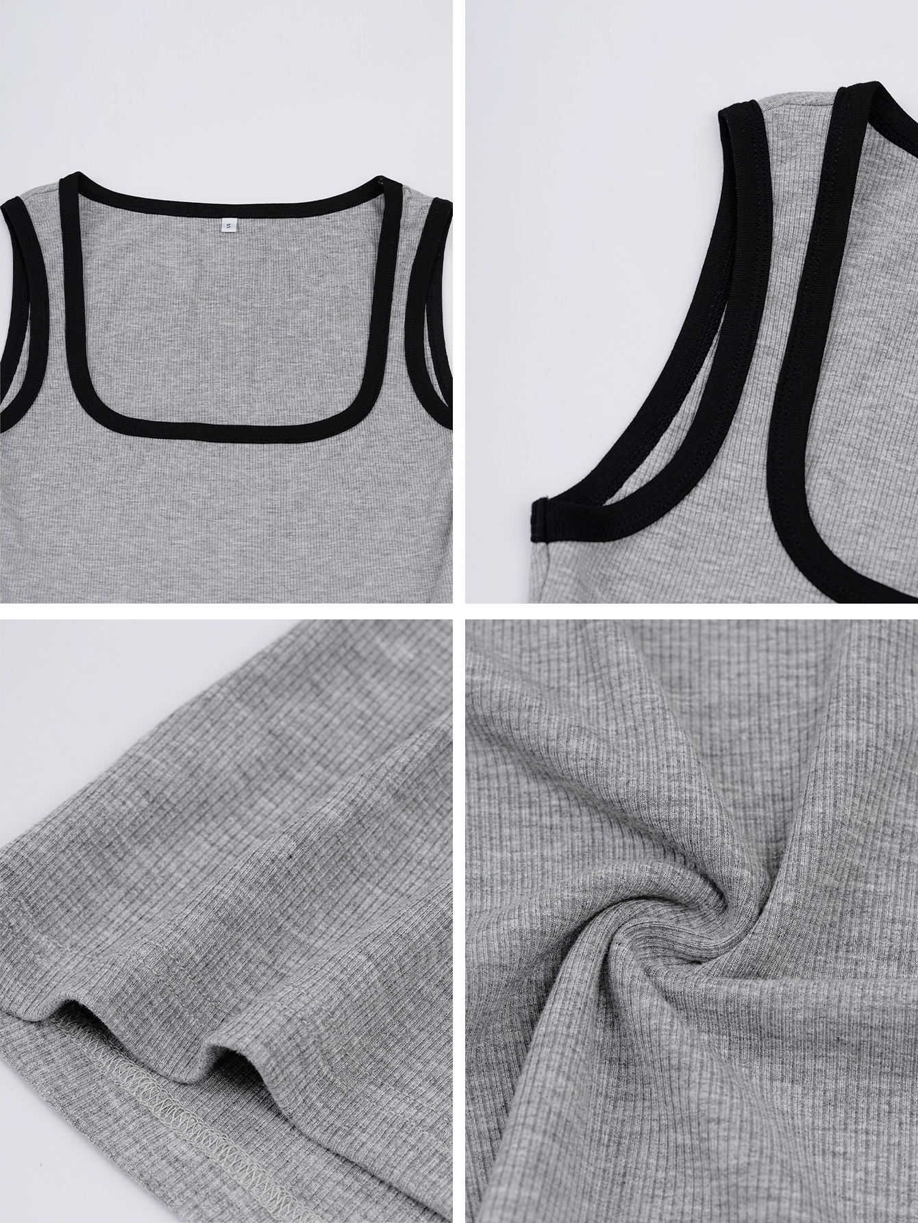 Design: This casual tank top features a classic round neckline design that exudes simplicity and elegance. The ribbed texture adds a subtle touch of sophistication, elevating the overall look. With its body-hugging silhouette, this tank top accentuates the curves, creating a sleek and flattering effect.