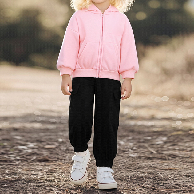 Girls Hoodie Sweatshirt Zip-Up Cotton Casual Pocket Jacket Spring Fall Clothes