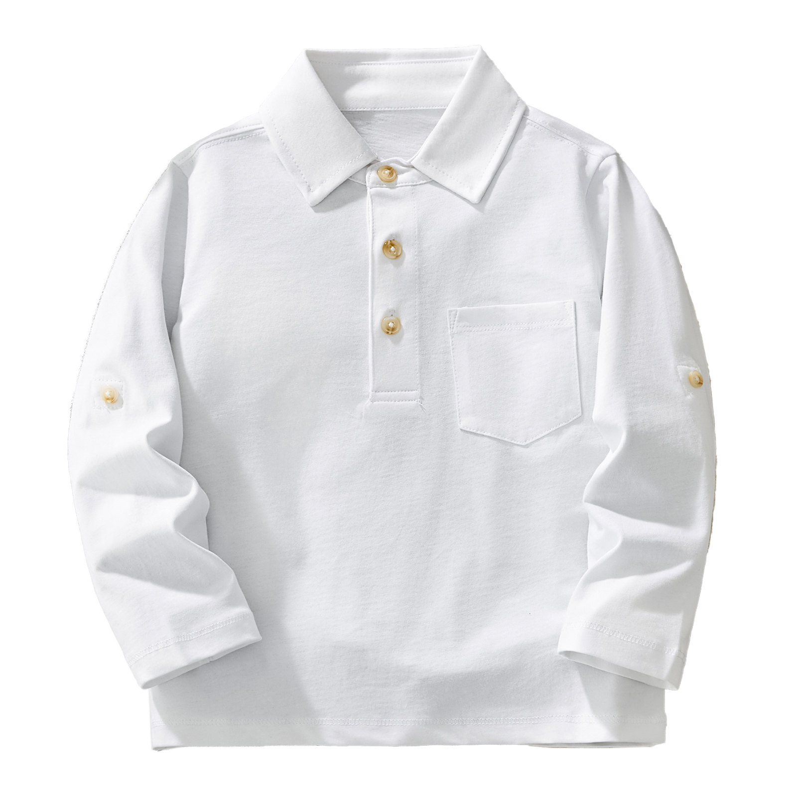 Boys' Long Sleeve Dress Shirts Classic Collared Button-Down Tshirt Solid Cotton Top with Chest Pocket