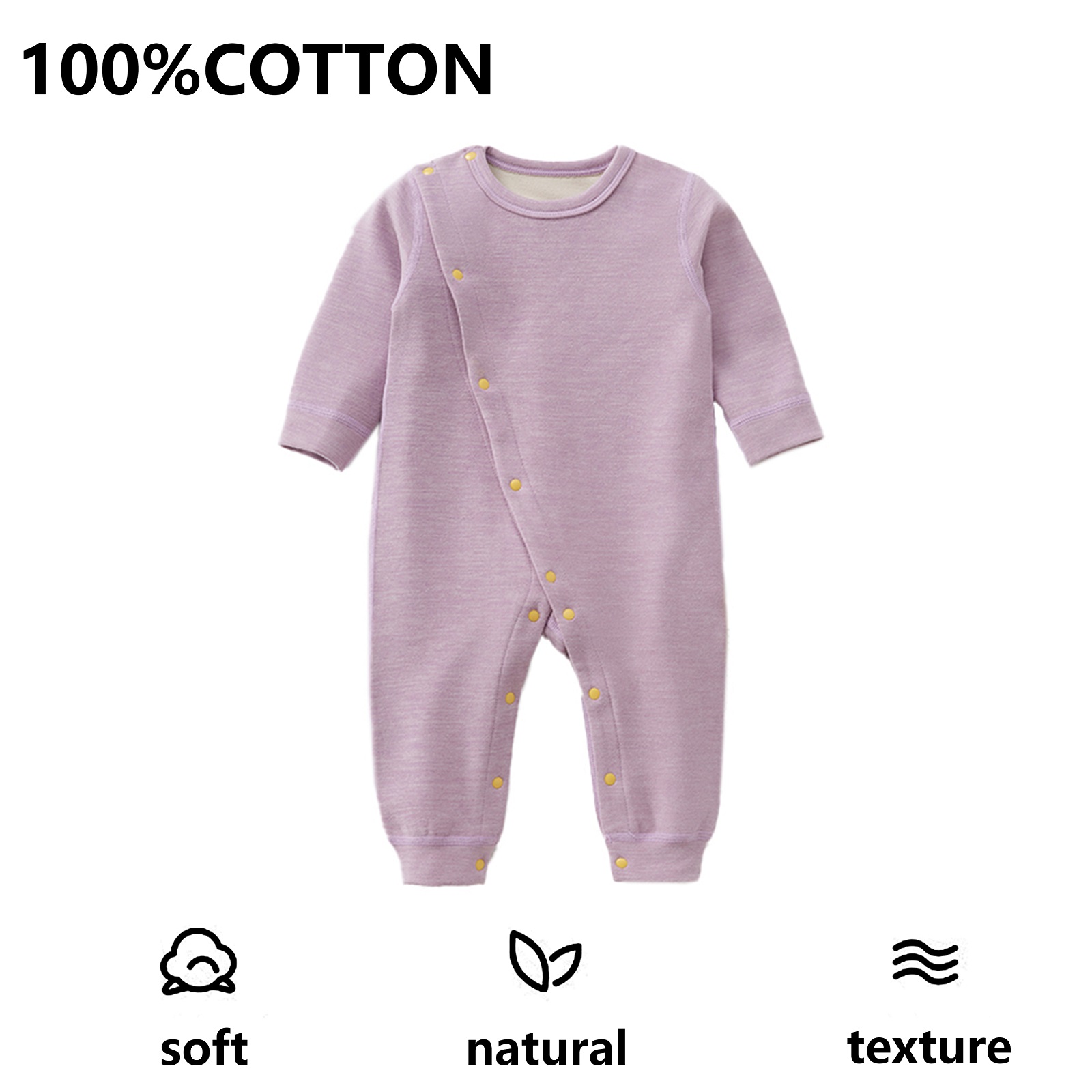 Design:This baby bodysuit features easy snap buttons for convenient dressing and undressing. The extra wide crotch provides ample room to comfortably hold a diaper in place. Cuffs at the sleeves and leg openings prevent cold air from entering, while the fleece lining inside offers added warmth.