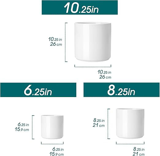 6"+8"+10" Ceramic Pot for Plants, Large Outdoor Indoor Planter Pots with Drainage Holes, Set of 3, White