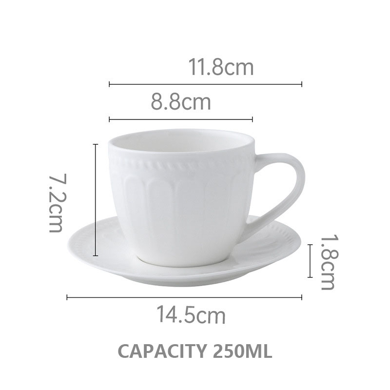 Good Cups Of Latte Art: Cup:Dia:8.8cm, H:7.2cm. Capacity:250ml. Saucer: Dia: 14.5cm, H: 1.8cm. Round bottom profile allows a fuller flavor to develop, and it is easy for the barista to make latte art designs. The thick wall maintains the flavor and keeps the coffee warm