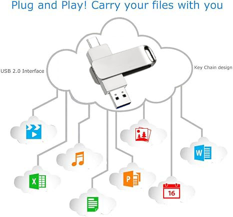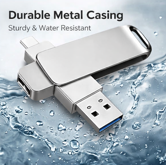 128GB Dual USB Flash Drive, USB A & Type C Thumb Drive, Metal OTG Memory Stick for Laptop, PC, Android Phone, Tablet – High Speed Data Storage