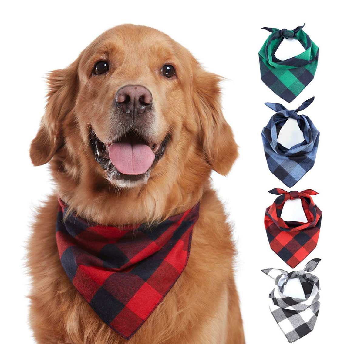 Buffalo Plaid Dog Bandanas 4 Pack, Reversible Cotton Triangle Bibs Scarf for Small Medium Large Dogs & Cats, Adjustable Pet Kerchief Set for Everyday Wear & Holiday