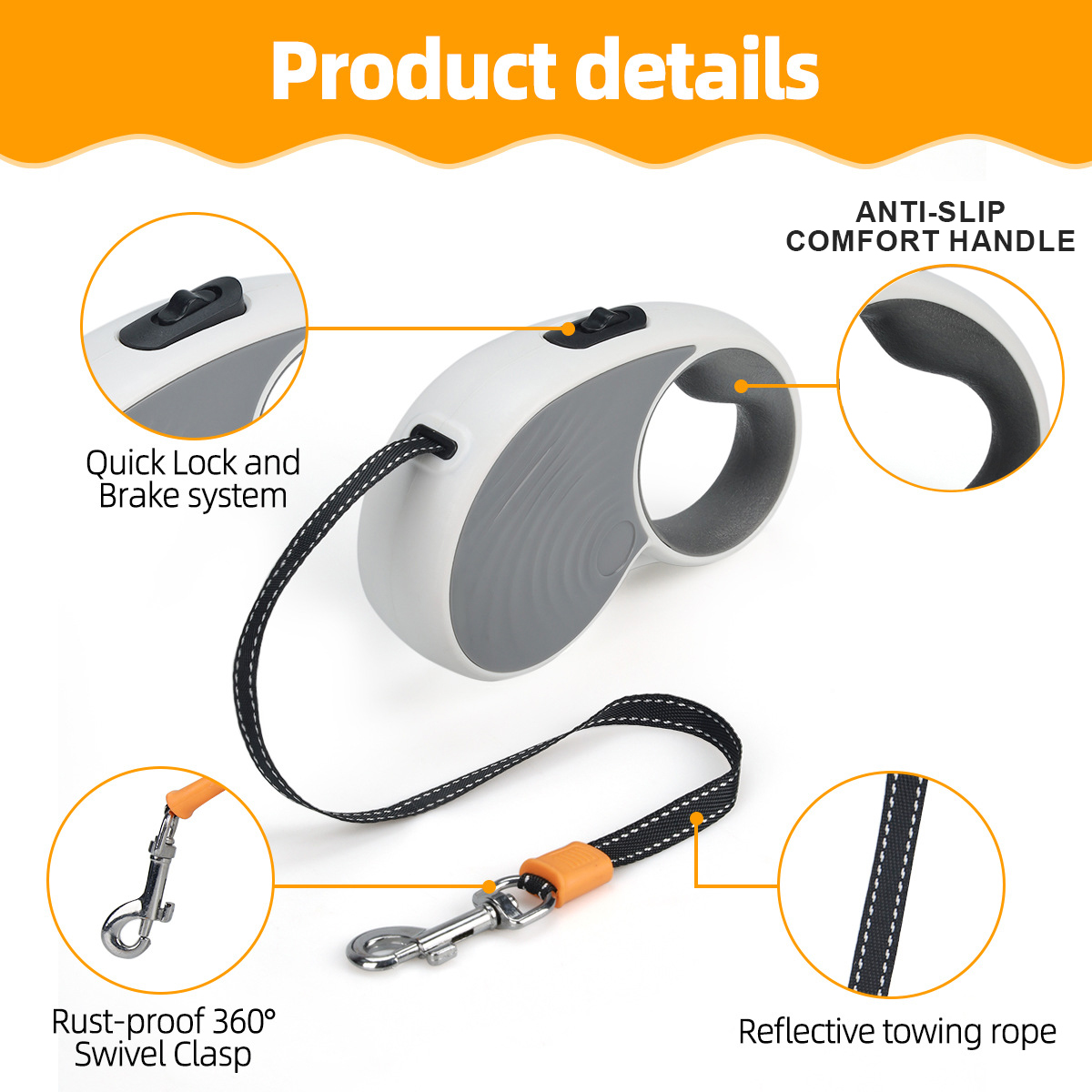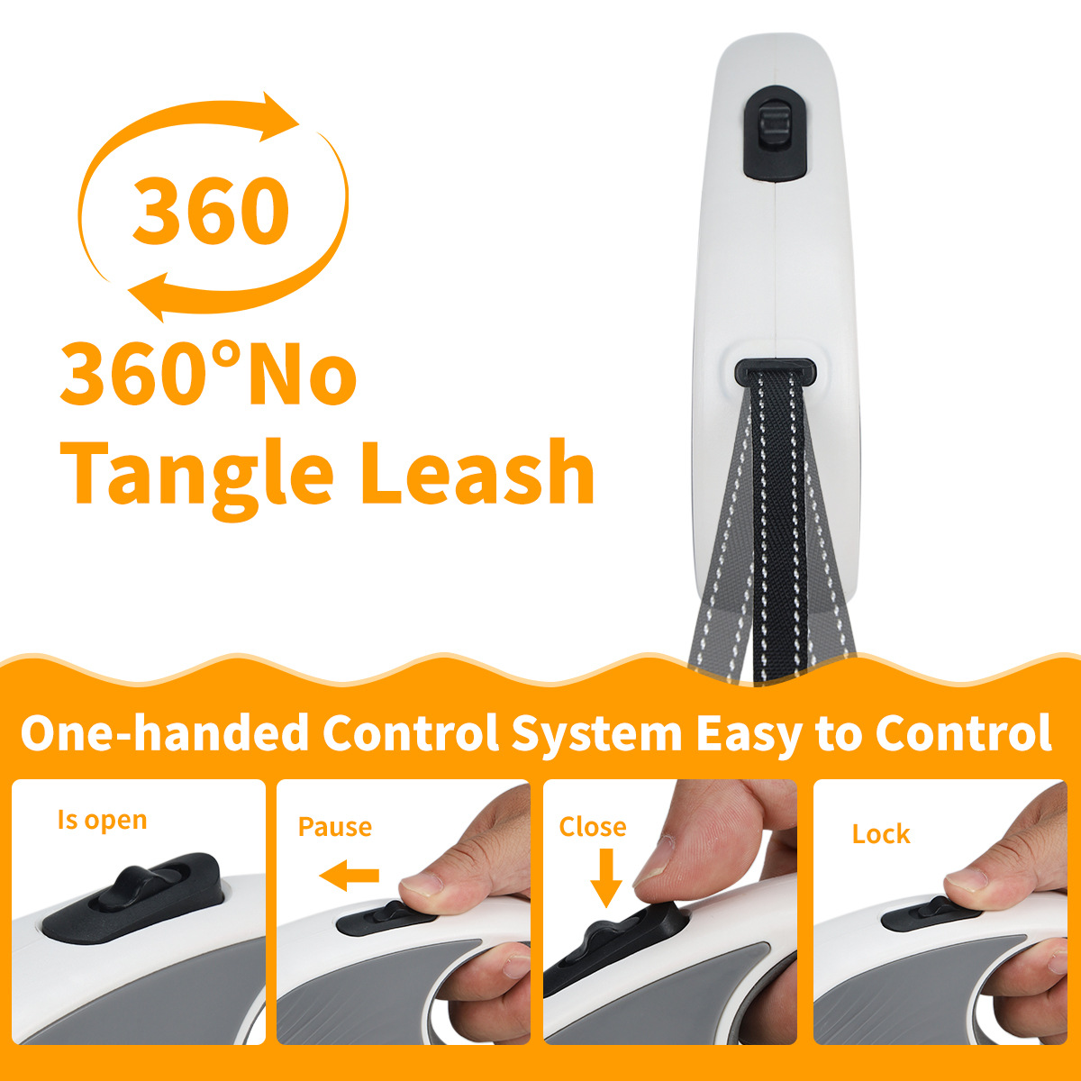 One-Handed Control System:The ergonomic anti-slip handle fits comfortably in your palm, and the smooth one-handed brake, pause, and lock system lets you quickly stop or adjust the leash length with just your thumb. Perfect for navigating busy sidewalks, parks, or unexpected distractions.