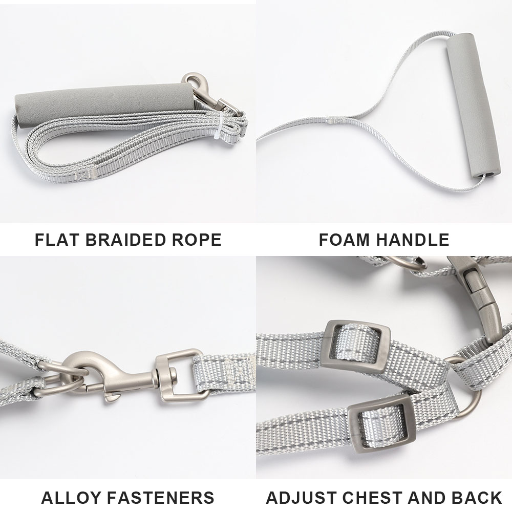 Matching Padded Leash Included:The set comes with a comfortable, padded handle leash that reduces hand fatigue during long walks. The heavy-duty metal clasp ensures a reliable connection, while the reflective stitching on both harness and leash boosts visibility in low light.
