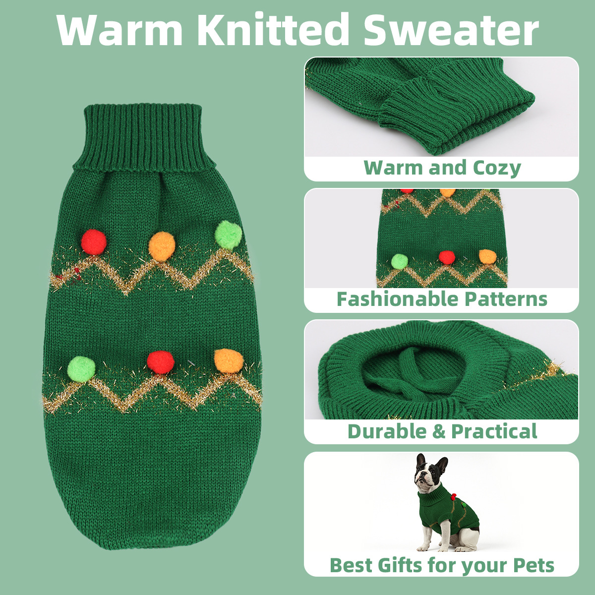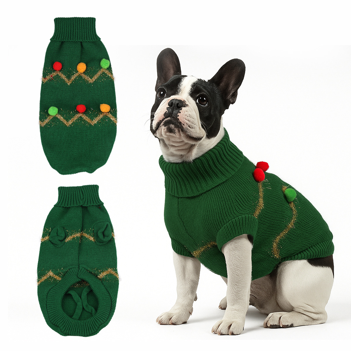 Festive Christmas Design:This turtleneck sweater features sparkling gold chevron patterns and colorful pom poms, perfectly capturing the holiday spirit. Your pup will look like a walking Christmas tree, making them the star of any festive gathering.