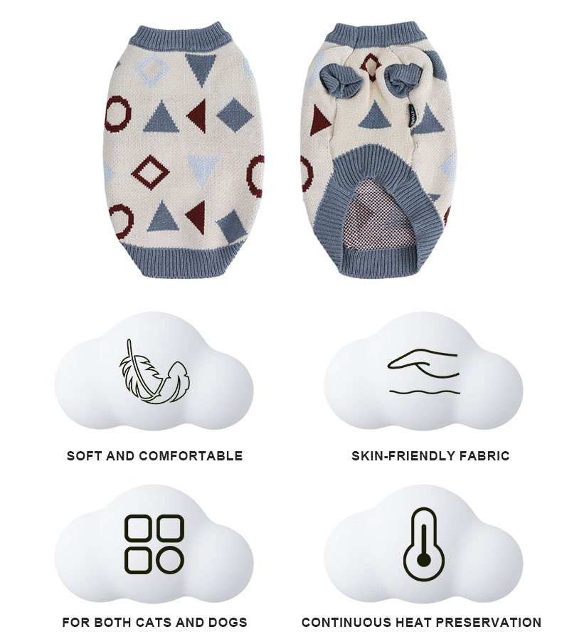 Soft & Skin-Friendly Knit Fabric:Crafted from high-quality knit, this sweater is ultra-soft and gentle on your pet’s skin, with no irritation.Its breathable knit structure traps heat to keep your pet cozy in cold weather, while preventing overheating.